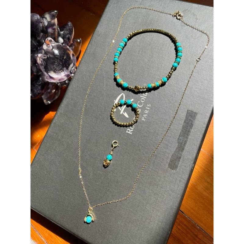 天然美國藍松石套組,有項鍊、手鍊、隨意扣、戒指,