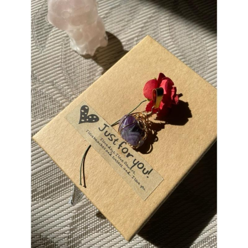 天然約16x7mm的紫水晶項鍊墜,無附鍊。 加墜檯扣頭約17x9x33mm(高),金屬材質為保色銅線編織繞線、黃銅。 銅的材質偏軟,天然原礦無法測量確切大小,切無精修打磨,介意者請勿下標。 本賣場水晶採自然光,拍照不打光,如有問題請私訊:)