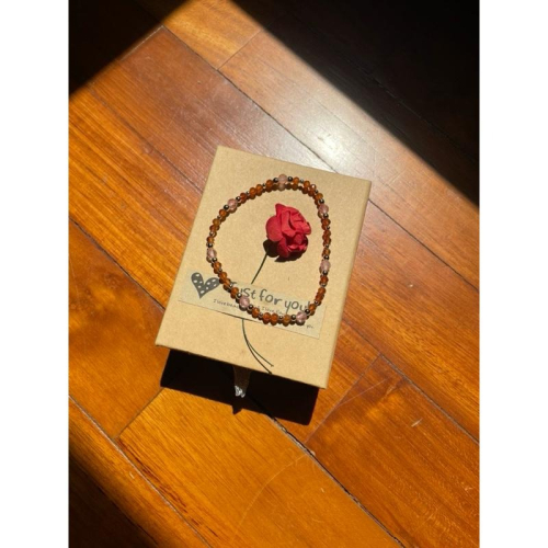 天然約4mm鑽切草莓晶+3mm鑽切橙石榴設計款,手圍約16.3,配飾為銅質。