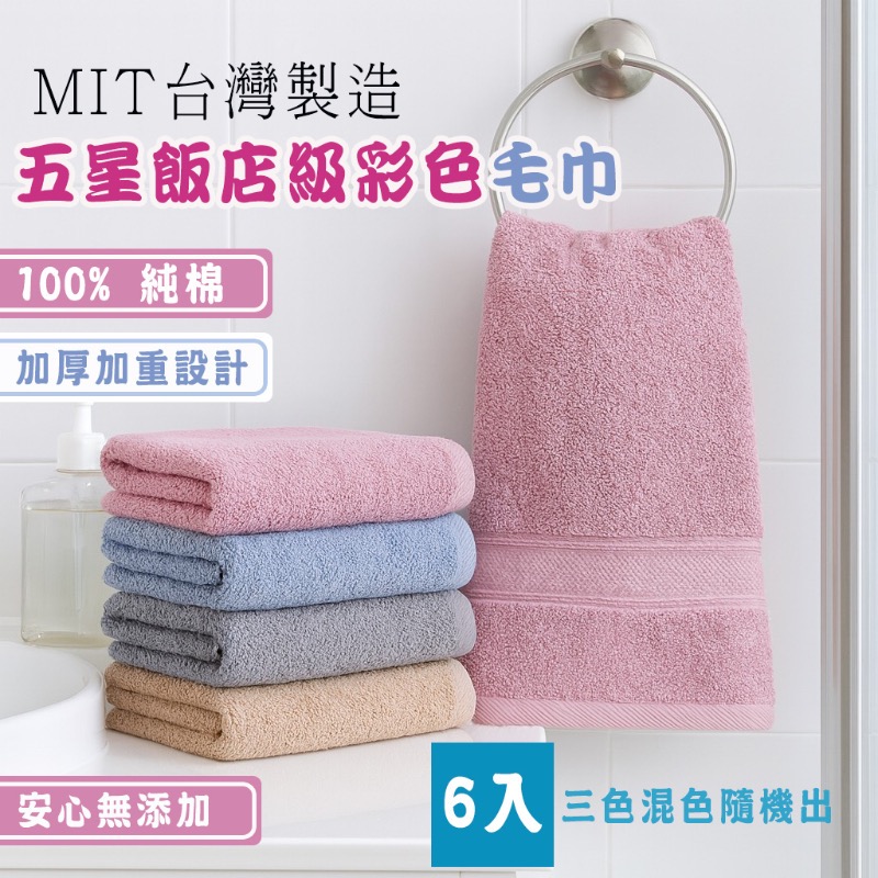 MIT台灣製五星飯店級彩色毛巾(6入一組)
