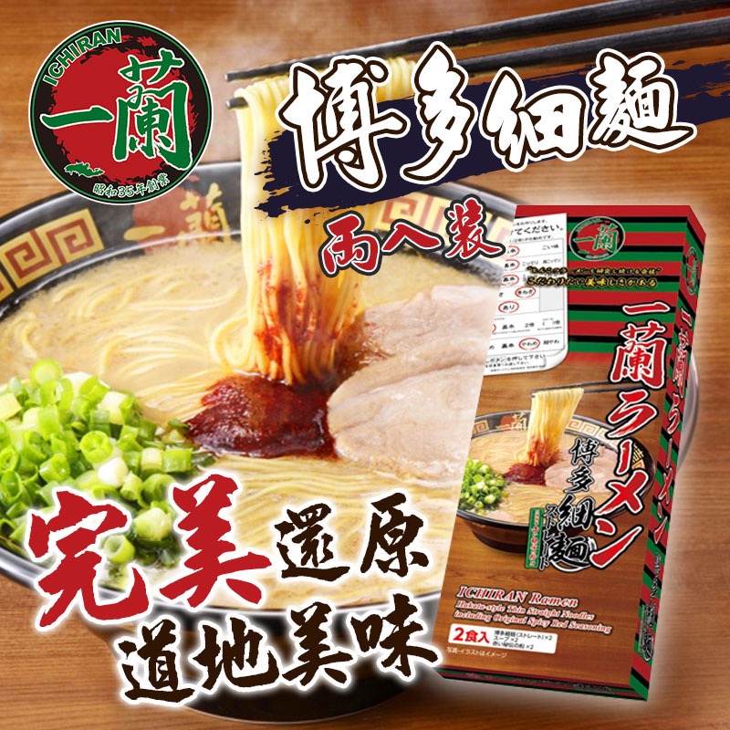 日本 一蘭拉麵 博多細麵 (直條麵) 2入 盒裝版