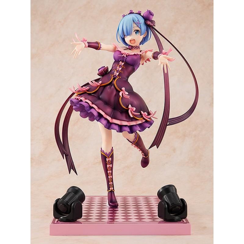 出自 KADOKAWA MF 文庫 J 現正刊行中的《Re:從零開始的異世界生活》,人氣女主角「雷姆」以 2021 生誕祭插圖造型化身為模型。參照擔任原作插圖——大塚真一郎老師為了 2021 年《Re:從零開始的拉姆與雷姆的生日生活2021 in 丸井》所繪製的生日插圖製成模型,細膩呈現如同偶像般的服裝。台座上附有燈飾機關,能享受現場演出的感覺。
