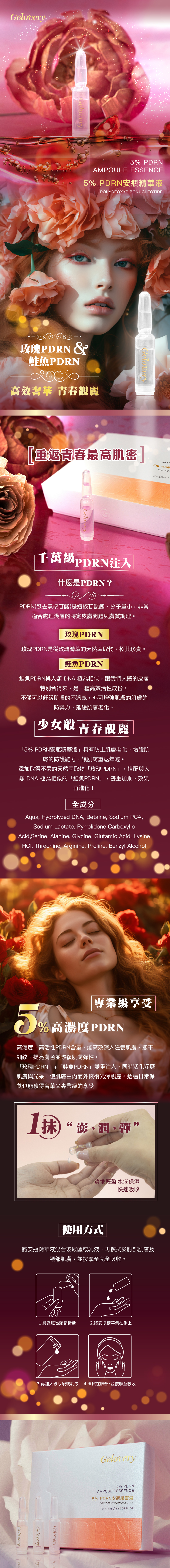 由原料一公斤上百萬的鮭魚PDRN 跟原料一公斤上千萬的玫瑰PDRN 以最有效的比例調製而成5%的PDRN原液 因爲大家有凝露了 所以建議可以全能乳跟原液混 如果沒有全能乳可以直接跟我玻尿酸混合 用別牌或是單擦也行 只是效果沒那麼好而已! 我知道大家都庫存很多我的保養品 所以決定出安瓶! PDRN5%原液安瓶到時一罐是1.5ml 可以把它折斷之後倒在手上 跟全能乳混合之後擦在臉上 簡單的把我的產品直接無痛升級成 高階的萬元的PDRN保養品