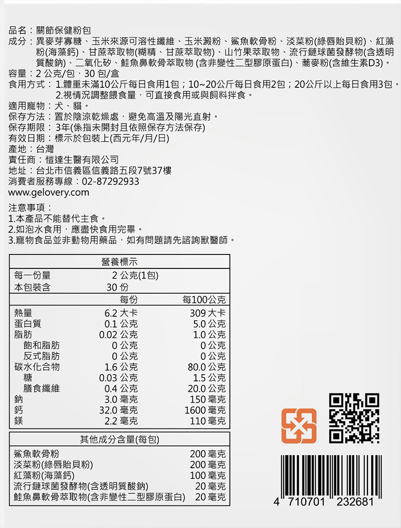 ⭕Gelovery 歐萊寵物關節保健粉包30包/盒