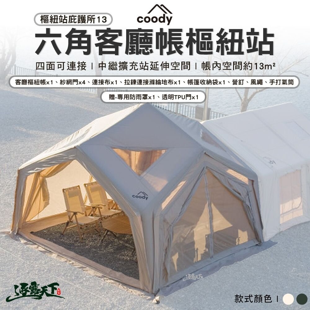 商品名稱:Coody 六角客廳帳樞紐站庇護所13 棉布充氣帳篷
