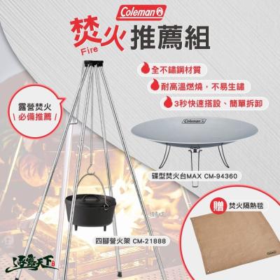 ★此賣場僅販售Coleman 四腳營火架+碟型焚火台MAX贈焚火隔熱毯,不含其他拍攝物,可自行另購。