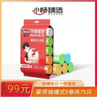 台灣現貨 小楊臻選正品保障家用抽繩式5卷【75入】垃圾袋 囤貨裝垃圾袋 抽繩式垃圾袋 耐承重 環保清潔袋 環保袋 清潔袋