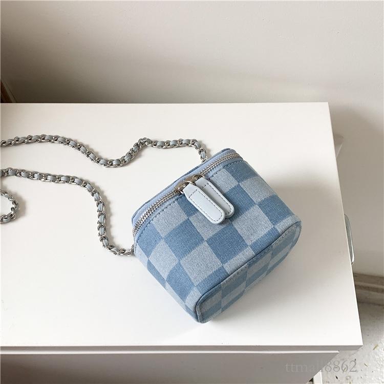 BAGG👾 棋盤格鏈條包包mini牛仔布小包雙拉鏈小眾零錢口紅盒子包女 時尚包 休閒百搭包包 母親節禮物