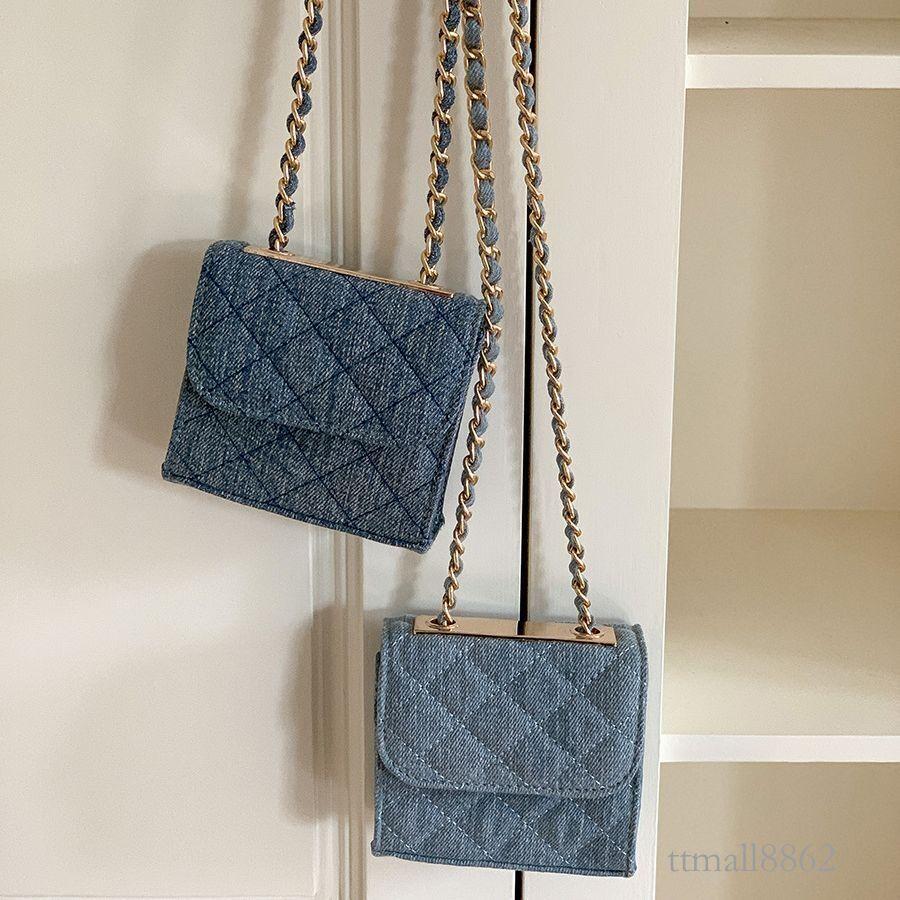 BAGG👾 韓版小眾牛仔布包mini肩背包高級感精致PU繡線菱格鏈條包女 時尚包 休閒百搭包包 母親節禮物