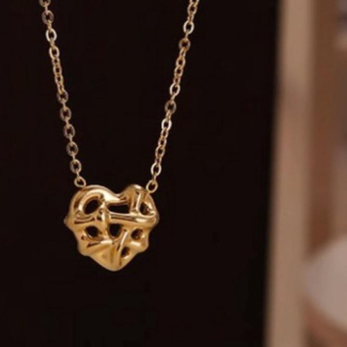 顏色: 18K金色 鏈子樣式: 水波鏈 材質: 鈦鋼 造型: 心形