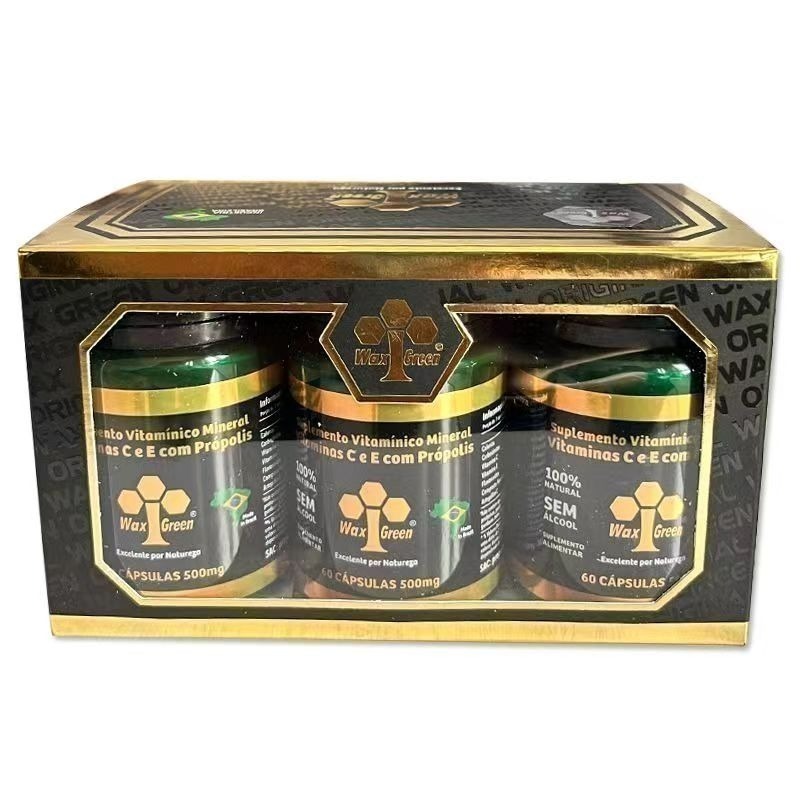 【現貨】巴西綠蜂膠Wax Green旺綠61號85%綠蜂膠軟膠囊500mg*60粒/瓶,6瓶/盒