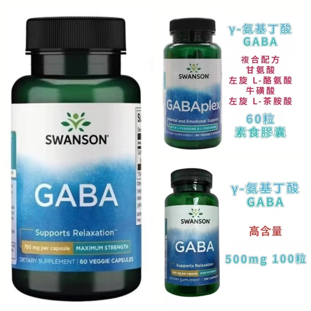 SWANSON γ-氨基丁酸GABA750mg60粒500mg100粒複方甘氨酸左旋L-酪氨酸牛磺酸左旋L-茶胺酸60粒