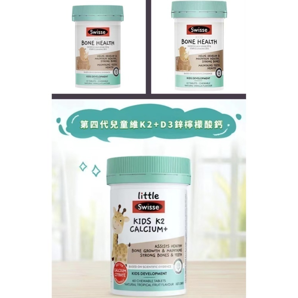 兒童檸檬酸鈣維生K2+D3維他命鋅水果味60粒/鈣維D3香草味60粒/50粒小犀牛鈣VD斯維詩澳商Swisse KIDS