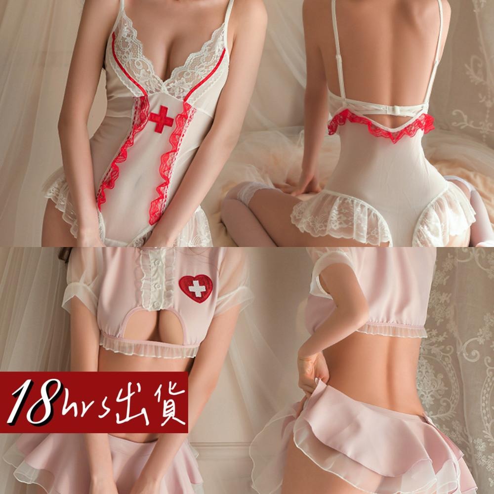 愛如潮水❤ 性感護士 角色誘惑 制服誘惑 情趣內衣 開檔免脫 護士制服 低胸蕾絲