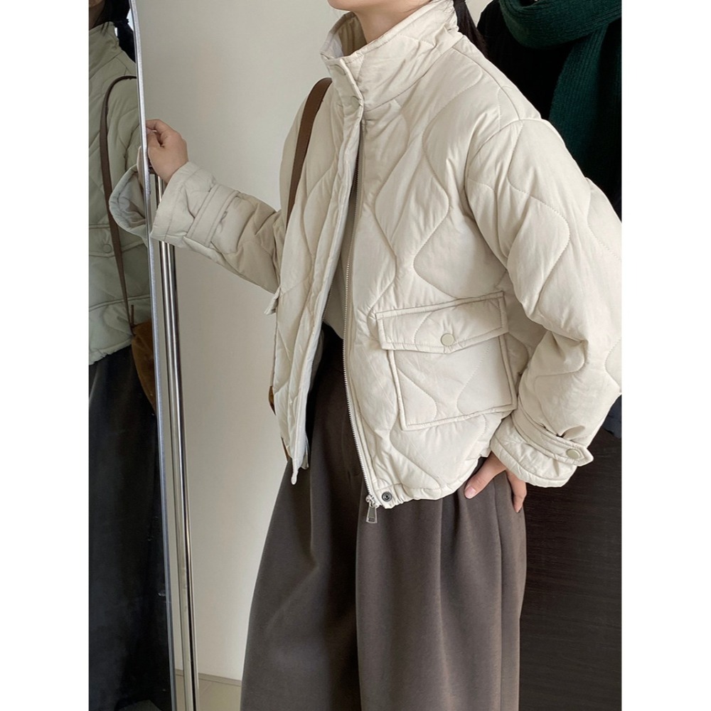 立領菱格鋪棉外套