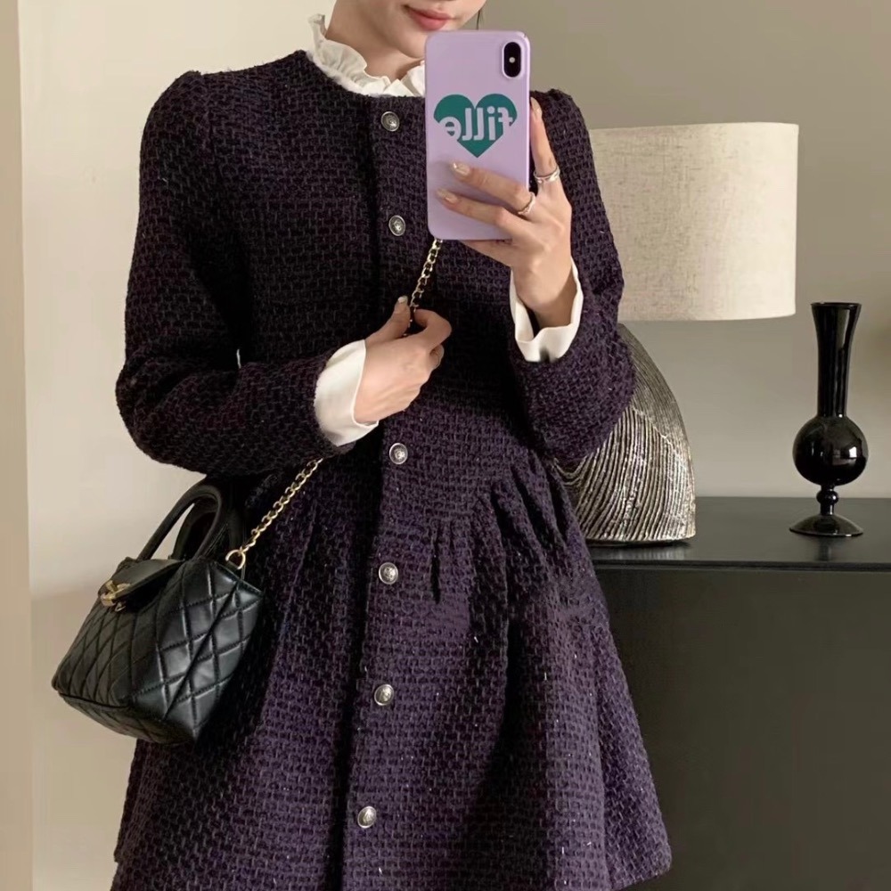 立領羊毛洋裝-領片、袖口可拆