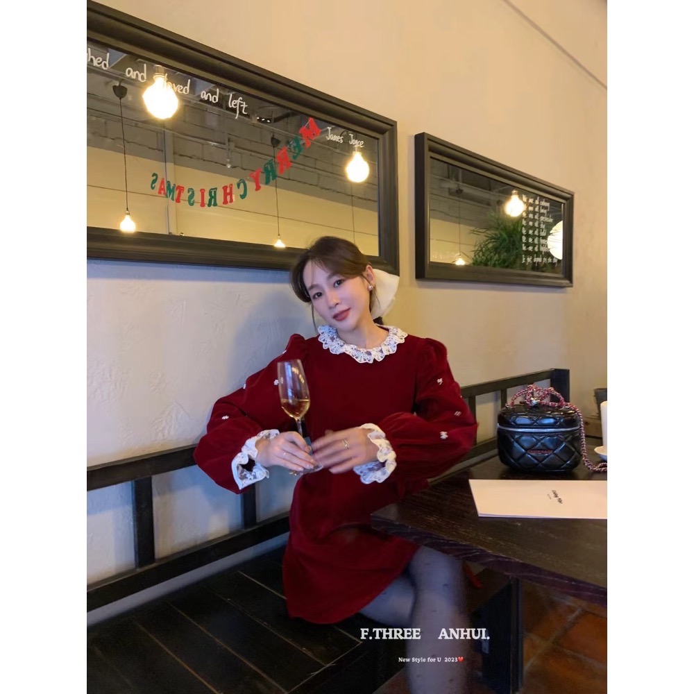蕾絲珍珠小花洋裝