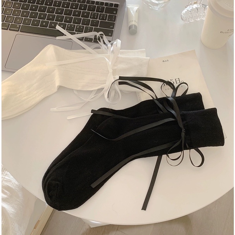 韓妞網眼薄透甜美蝴蝶結中長襪