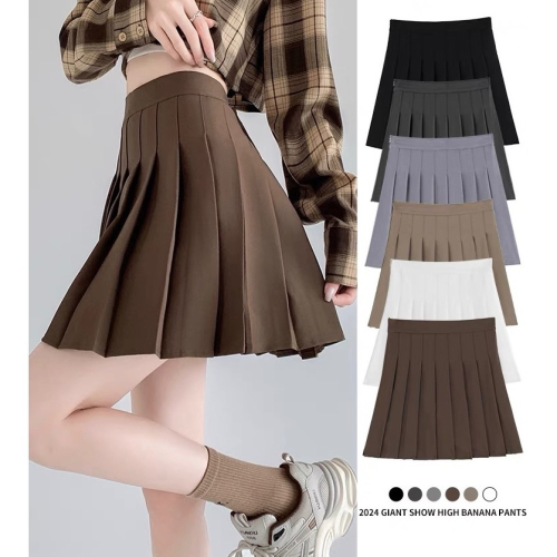 韓國超顯瘦A字毛呢百褶裙 內連安全褲