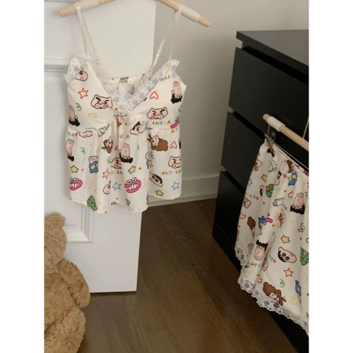 吊帶蕾絲蠟筆小新貓居家服 睡衣