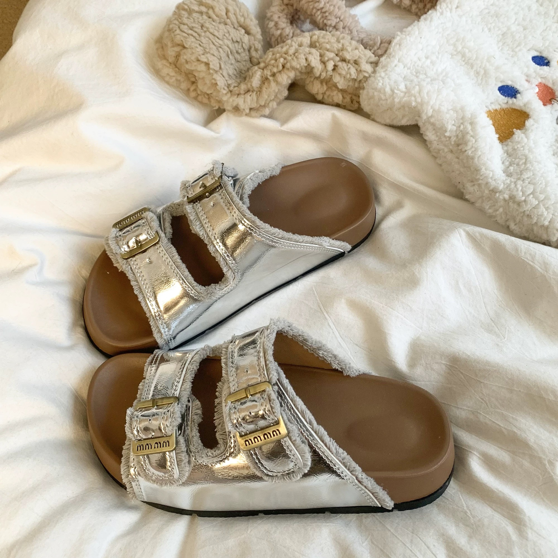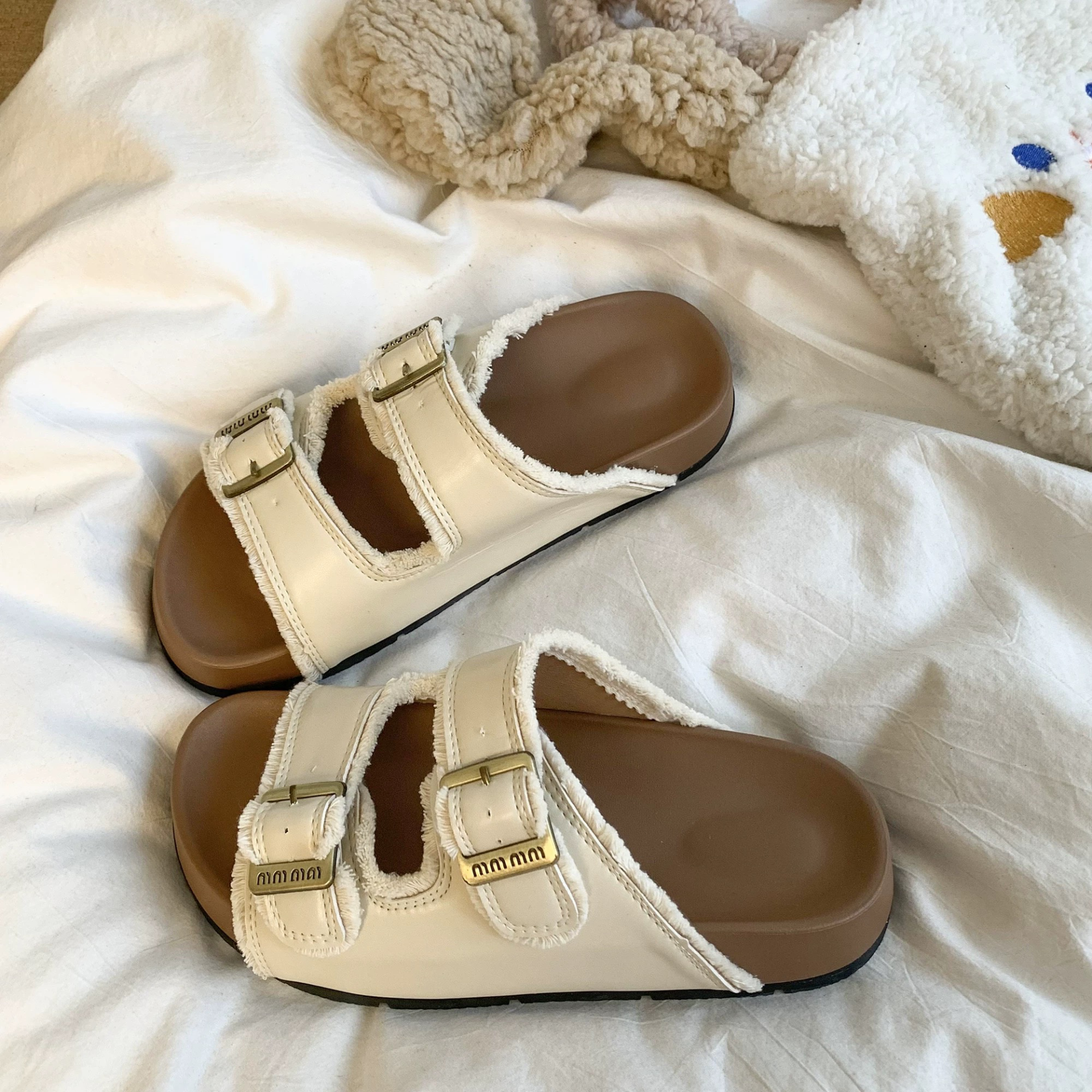 #新款 復古高級感m字母厚底勃肯拖鞋