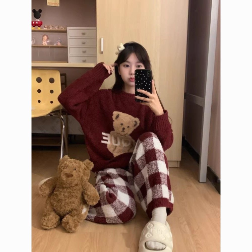 紅色格子小熊家居服套裝
