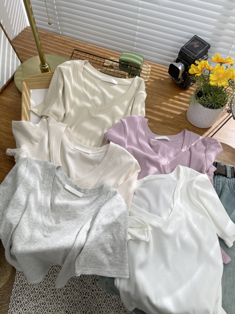 V領短版素T