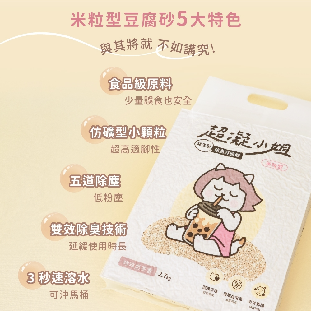 超凝小姐|益生菌除臭豆腐砂(7L) 貓砂 豆腐砂 可沖馬桶 快速凝結 低粉塵 香氛除臭 6包/箱 (箱購免運)