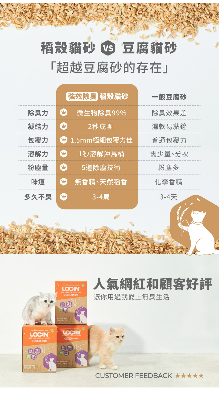 【澳洲LOGIN】洛格強效除臭稻殼貓砂 | 99%除貓尿氨酸 | 優於一般貓砂20倍除臭力 稻穀砂/ (箱購6入免運)
