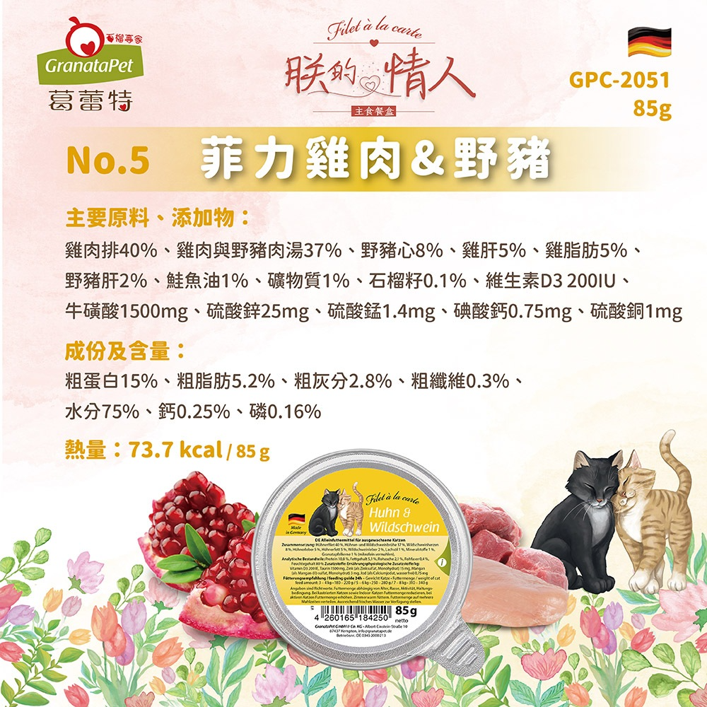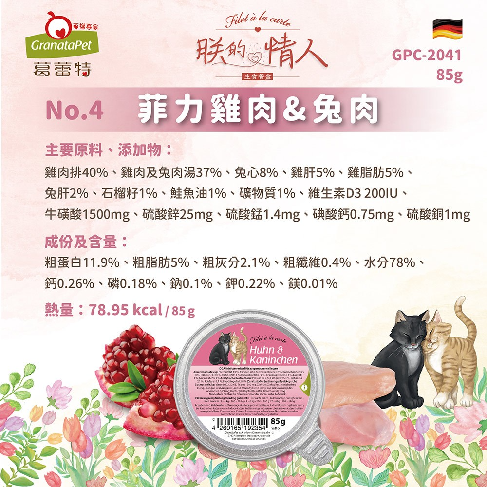 葛蕾特 朕的情人主食餐盒 85G 貓餐盒 GranataPet 貓咪餐盒 德國貓餐盒 貓罐