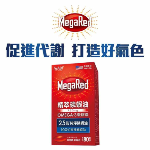 Schiff MegaRed 精萃磷蝦油Omega-3軟膠囊(食品) 80粒 每日一顆含750MG磷蝦油 W-3脂肪酸225MG、EPA 116MG & DHA 68MG 調節生理機能、維持健康 使用MSC標準認證魚場 美國原裝進口 ------------------------------------------------------------------------------------------------------------ MegaRed濃縮純淨藻油 Omega-3 軟膠囊(食品) 50顆 純淨微藻精華EPA+DHA,選用美國FDA GRAS公認安全藻油 植萃優質Omega-3,遠離汙染源,全素亦可食用 一顆補足WHO建議Omega-3攝取量