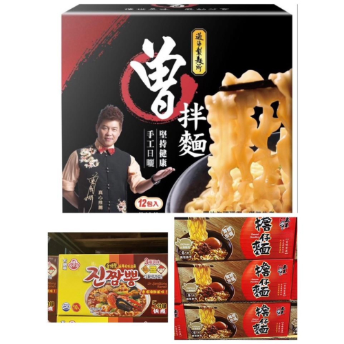 曾拌麵香蔥椒麻口味116公克 非油炸麵體,低油脂含量 波浪型麵條,醬汁更容易沾附 精選辛香料,熬製美味醬汁 口味香蔥椒麻(辣味),不敢吃辣朋 友,可以不加椒麻醬,也是好吃喔~ --------------------------------------------------------------------------- 韓國不倒翁金螃蟹海鮮風味拉麵 130g 正宗韓國香辣海鮮風味拉麵 是韓國炒碼麵的ㄧ種 特製寬口麵條 口感Q彈 特調海鮮湯頭 喝出海鮮鮮甜 添加乾燥蟹肉與墨魚 ---------------------------------------------------------------------------------------------------------------------------------------------------------- 韓國農心頂級辛拉麵 130公克