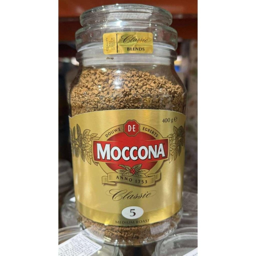 Moccona 即溶咖啡 每罐400公克 原產地:荷蘭 使用中度烘焙咖啡豆 採用第一道萃取咖啡精華 經過冷凍乾燥程序 保有咖啡本身香氣