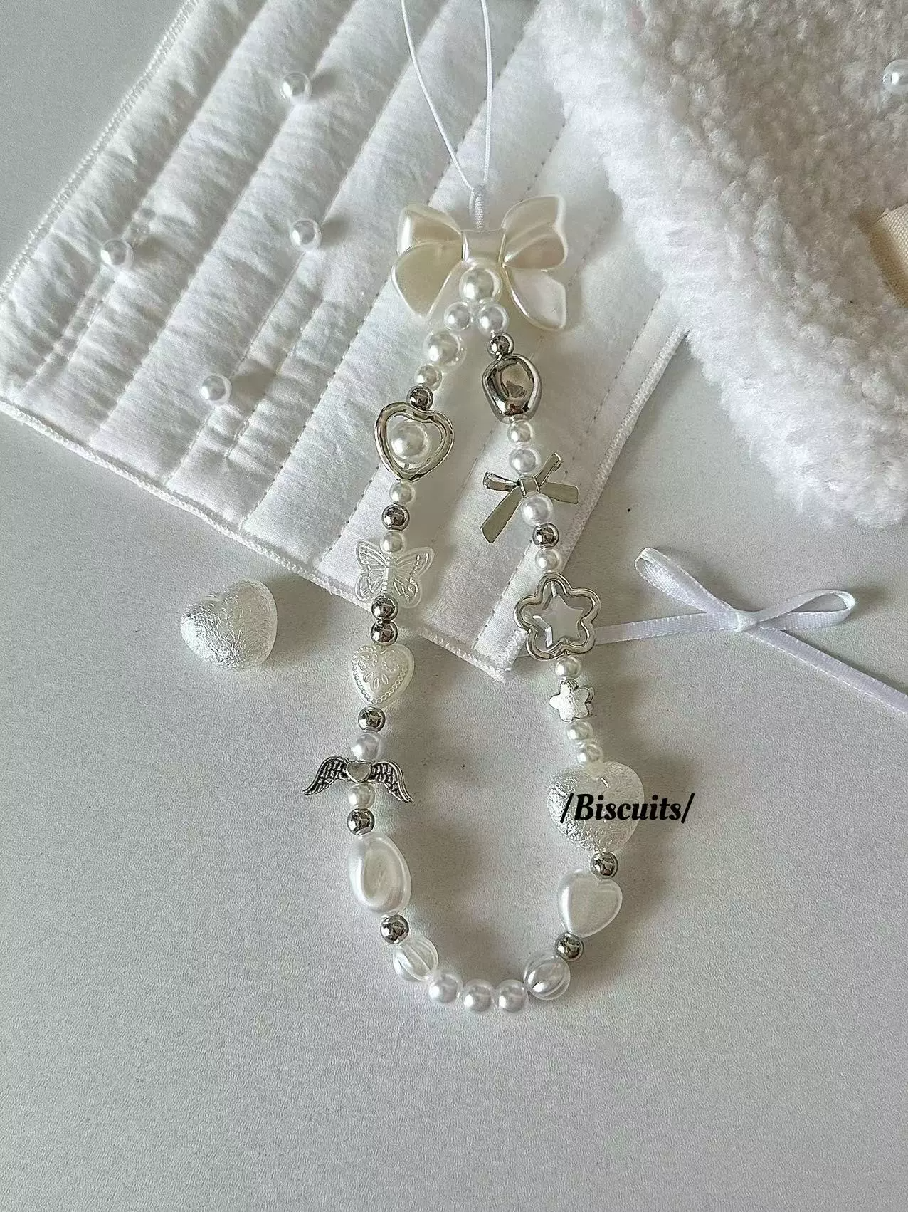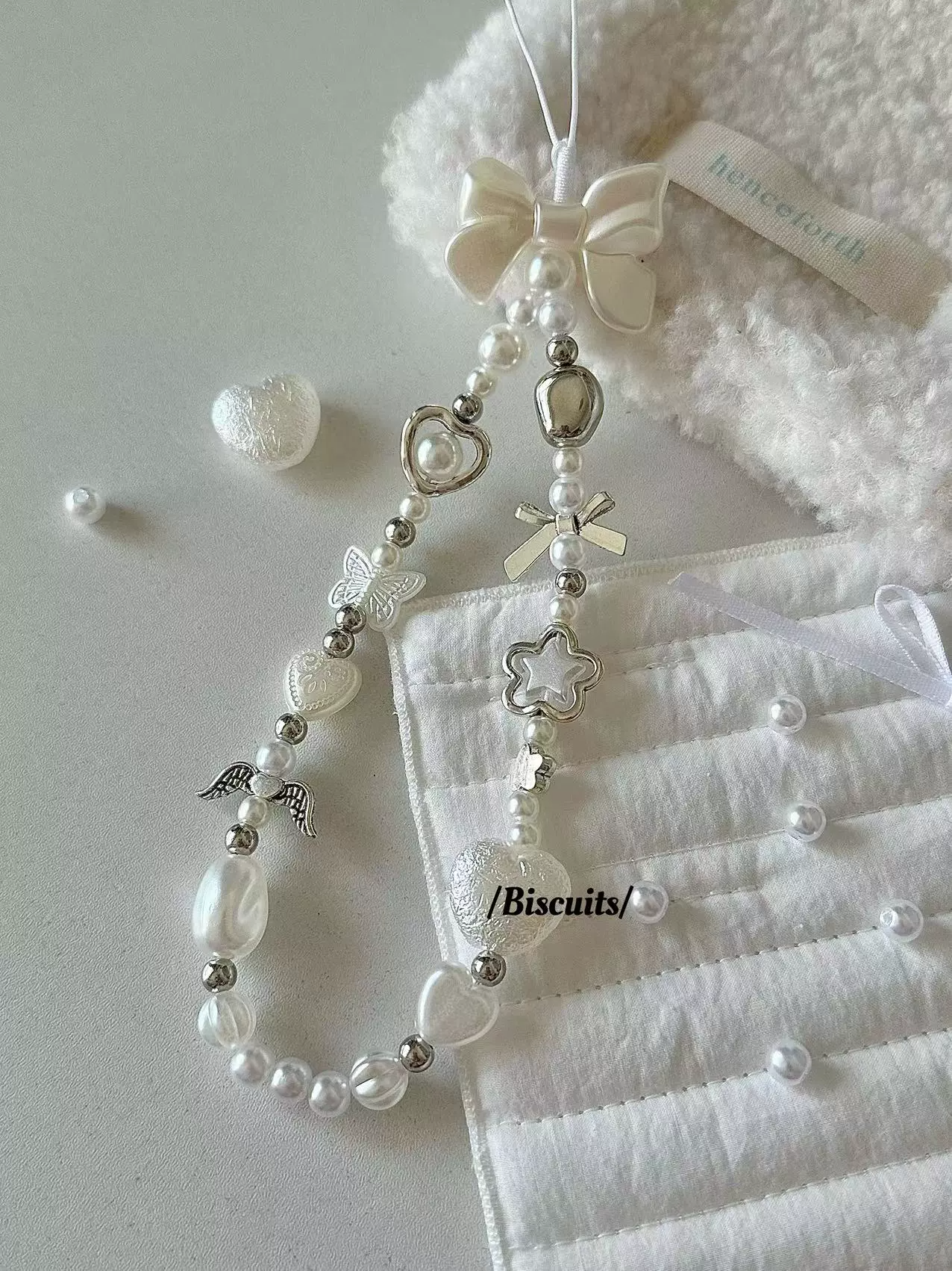 天使翅膀👼🏻珍珠串珠手機掛繩