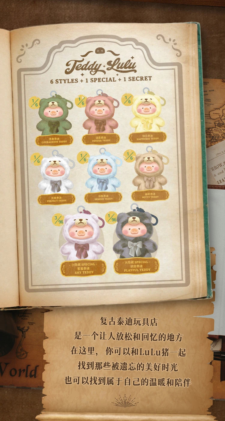 LU LU豬復古泰迪玩具店系列 搪膠臉毛絨盲盒