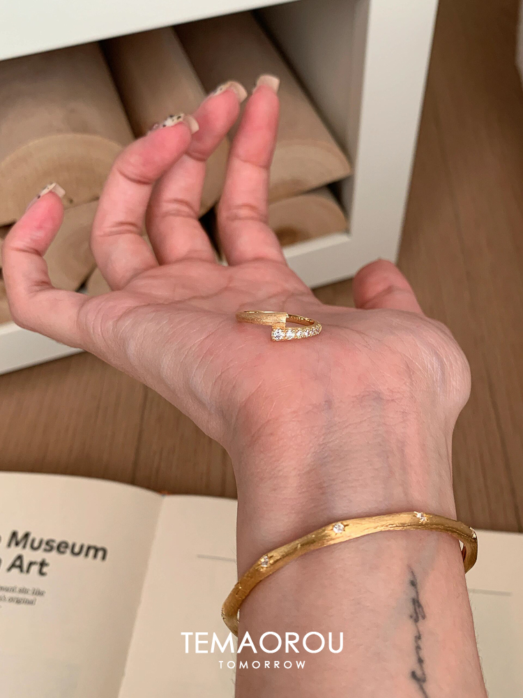交錯的星軌💫排鑽拉絲戒指