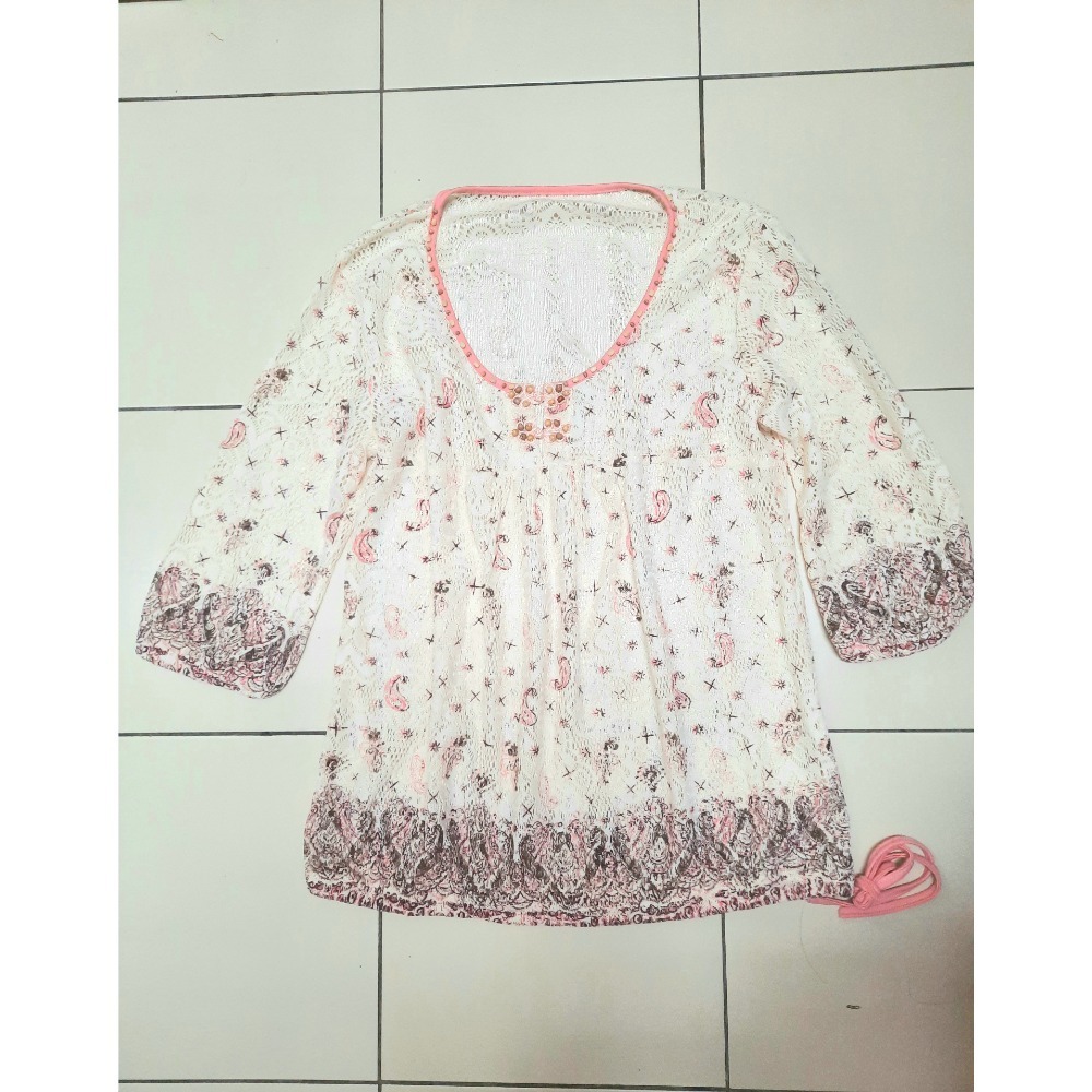 米白色蕾絲透膚衣 SIZE F