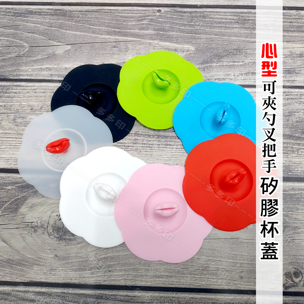 多多印 可夾勺叉心型把手 矽膠杯蓋 矽膠保鮮蓋 無毒茶杯蓋 防塵矽膠杯蓋 防塵蓋子 水杯蓋子 杯子蓋 保鮮蓋 密封蓋