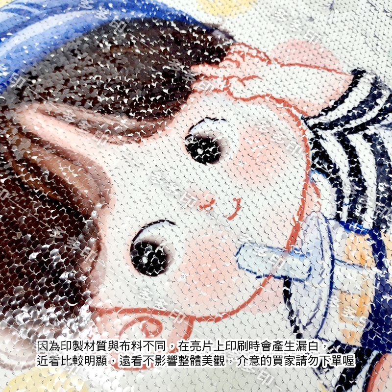 ◆此款枕套材質為亮片,摸起來觸感不像絲棉那樣柔軟。若要用來作為抱枕會覺得有些刺刺的觸感;其次亮片會有些許掉落為正常現象,介意的買家請勿下單。