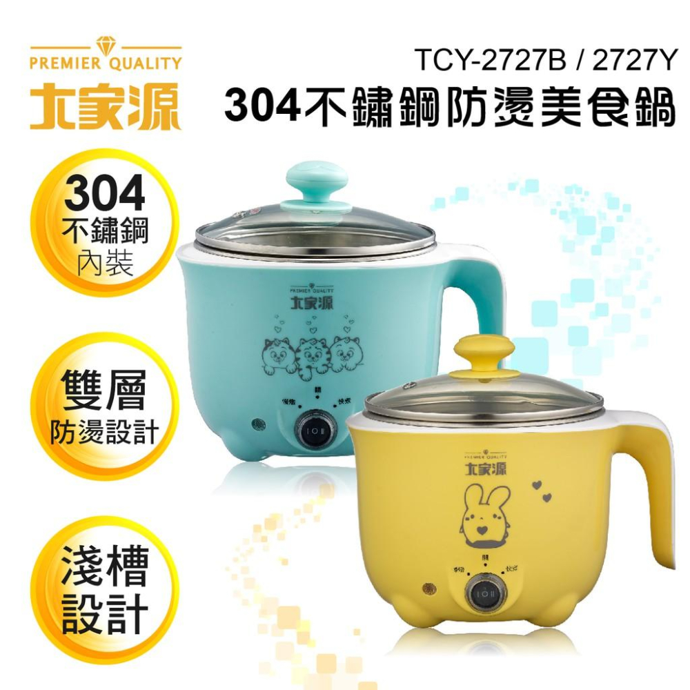 大家源304不鏽鋼防燙美食鍋 電煮鍋 快煮鍋 電火鍋 泡麵鍋TCY-2727B/2727Y