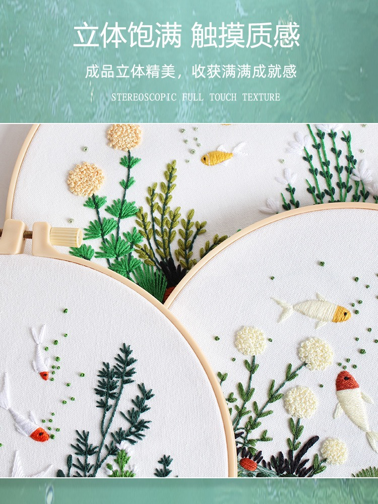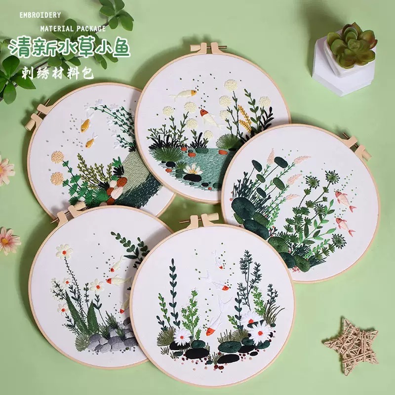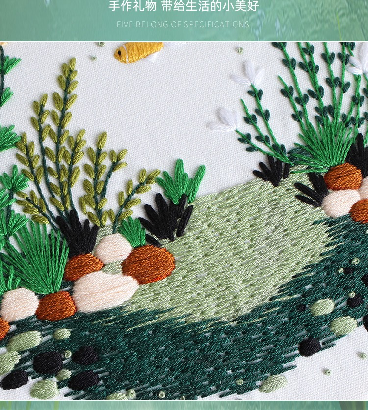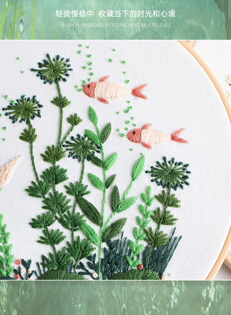清新水草小魚水底海底 diy手工刺繡材料包 跨境英文新款原創
