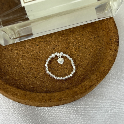 ||董飾 純銀飾品|| 925純銀-(彈力繩戒指)銀圓珠+垂吊愛心 純銀戒指