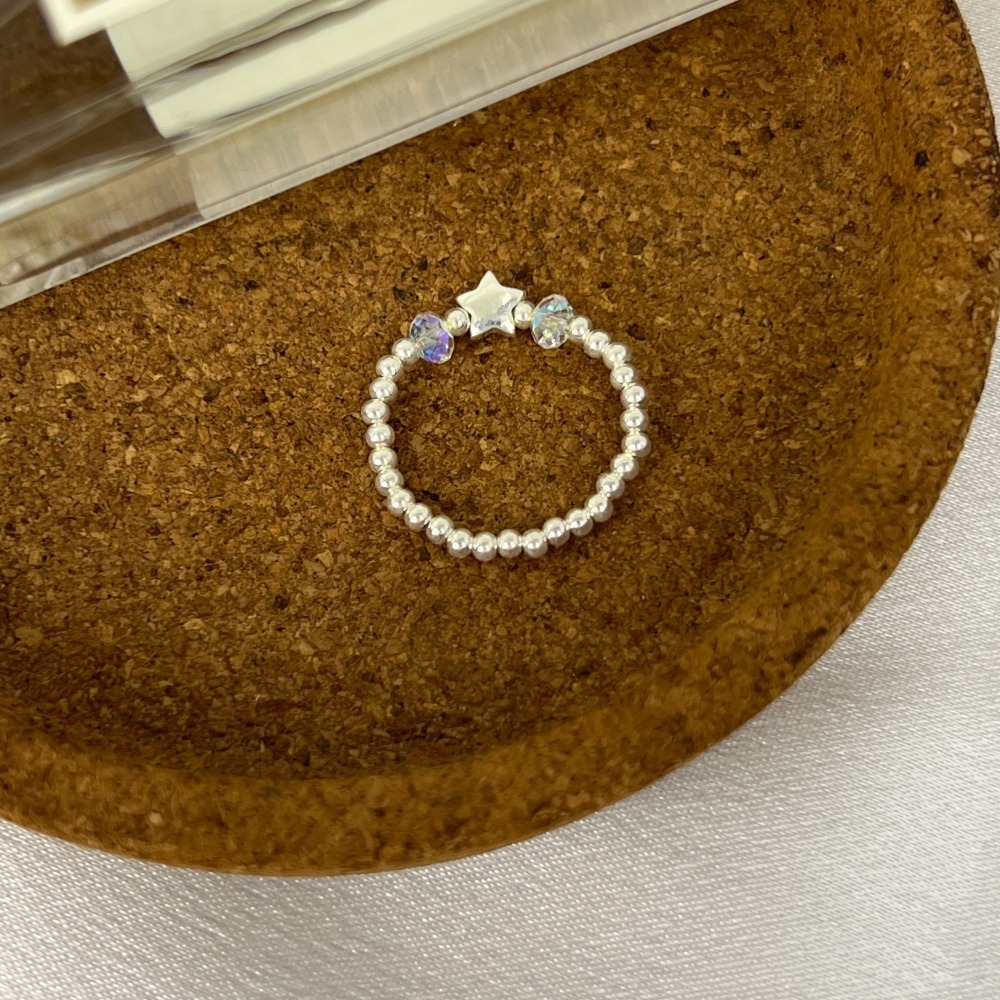 ||董飾 純銀飾品|| 925純銀-(彈力繩戒指)銀圓珠+水晶+星星 純銀戒指