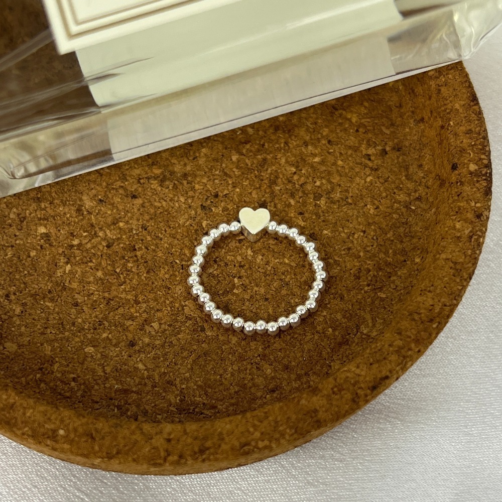 ||董飾 純銀飾品|| 925純銀-(彈力繩戒指)銀圓珠+愛心 純銀戒指