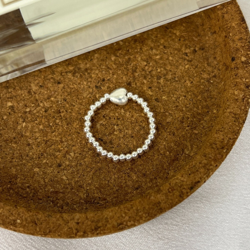 ||董飾 純銀飾品|| 925純銀-(彈力繩戒指)銀圓珠+愛心 純銀戒指