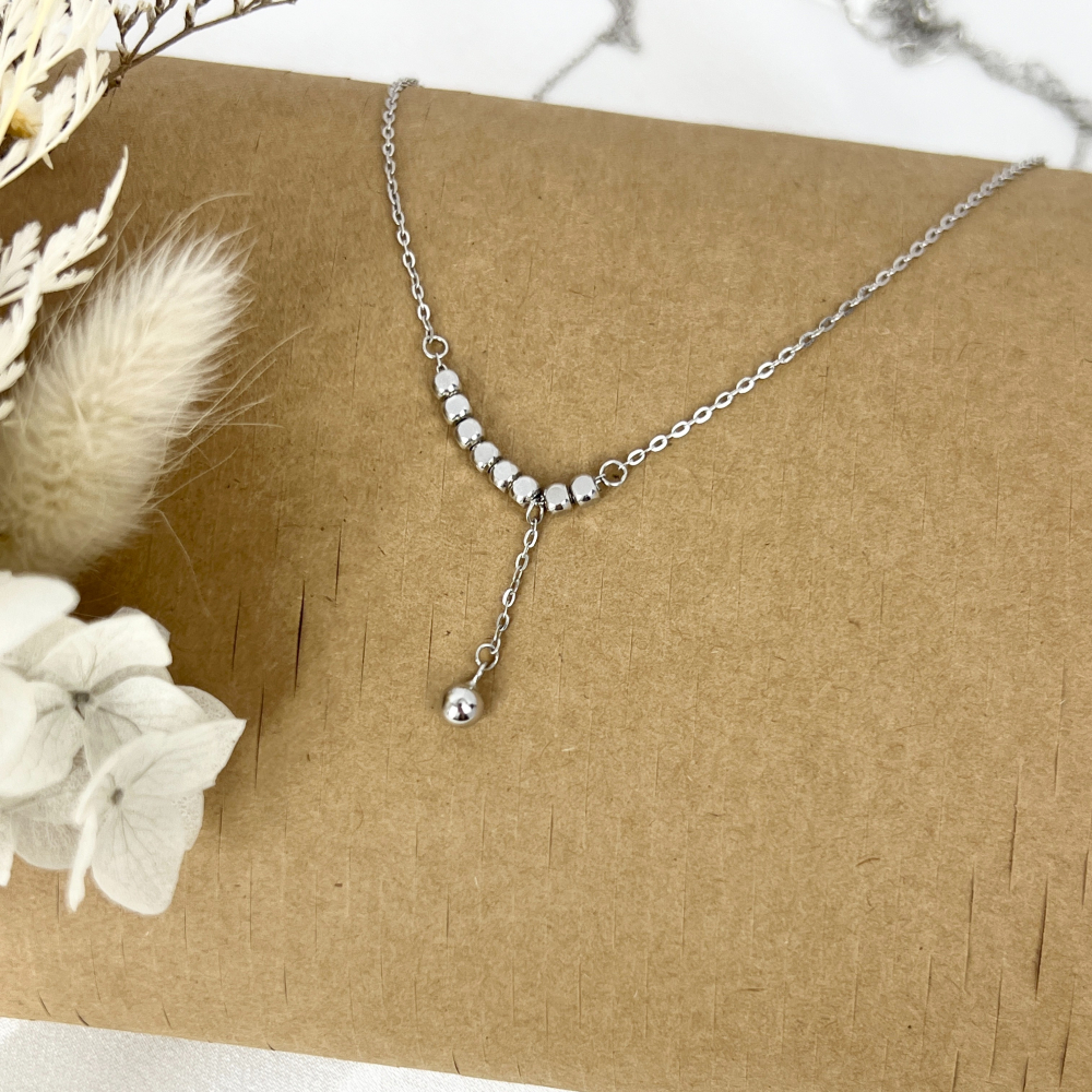 ||董飾 純銀飾品|| 925純銀-不規則串珠 垂吊小圓珠 項鍊