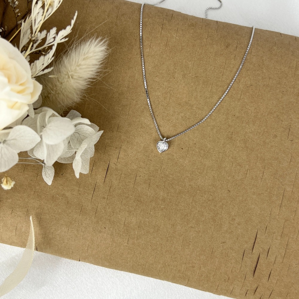 ||董飾 純銀飾品|| 925純銀- 愛心 單鑽 項鍊