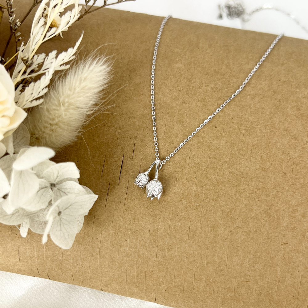 ||董飾 純銀飾品|| 925純銀- 鑲鑽 鬱金香 項鍊
