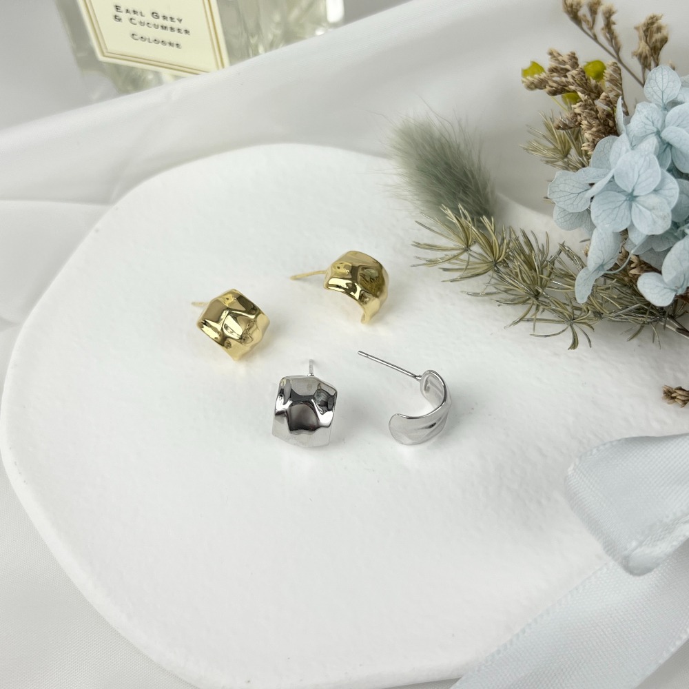 ||董飾 純銀飾品|| 925純銀-C型不規則寬面 純銀耳環