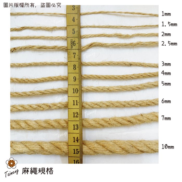 🔹產品說明:取各種麻類植物的纖維而成,具有耐磨損,耐腐蝕,耐雨淋,使用方便等優點。1mm~2.5mm質地蓬鬆偏軟,適合勾針、編織,3mm等更粗的規格扎實偏硬,適合包裝、綑綁。
